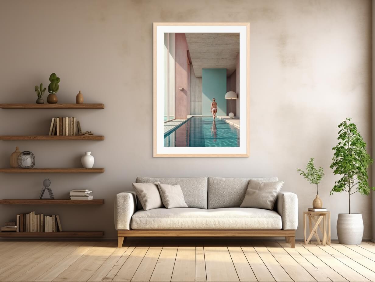 Dive into a pastel dream with The Swimming Pool Framed & Mounted Print. This limited edition art piece comes framed and ready to hang, with free shipping included. Create a whimsical and colorful addition to any room.